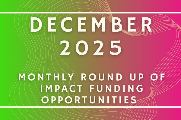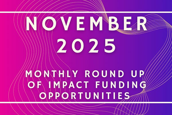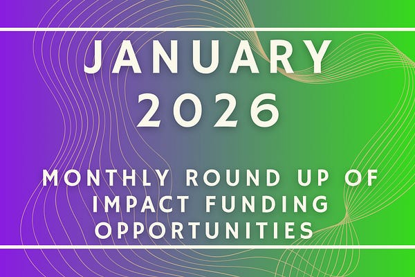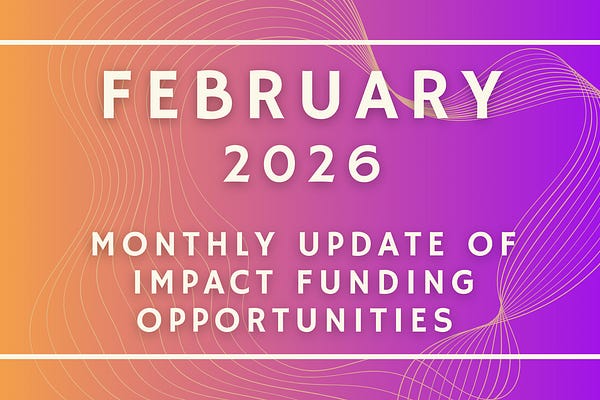 A monthly curated list of impact funding opportunities for social enterprises and non-profits, curated by Eliana Summer-Galai.