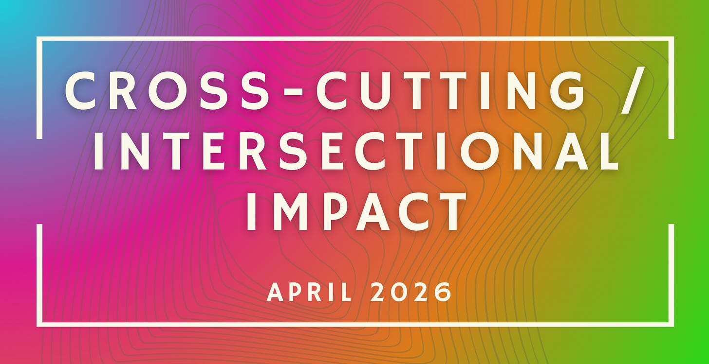 The April update for Cross-Cutting & Intersectional Impact is the broadest edition in this cycle — a catch-all section that this month tells a surprisingly coherent story about where flexible, systems-oriented funding is moving.