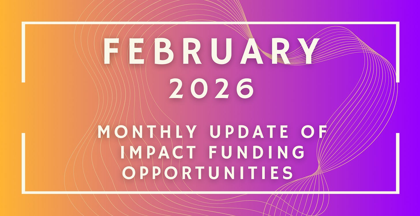 Welcome to the February 2026 Impact Funding edition of 2026- celebrating one year on Substack!