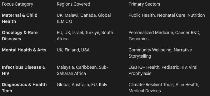 This month features a heavy concentration of funding in translational medicine and community-led equity models.